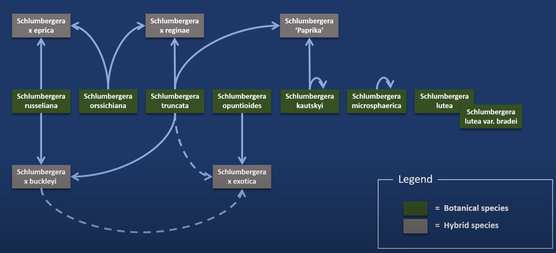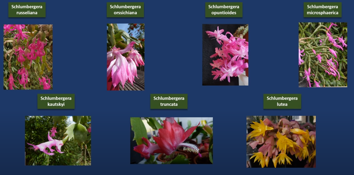 In the Northern Hemisphere, they are called Christmas cactus, Thanksgiving cactus, crab cactus and holiday cactus. In Brazil, the genus is referred to as Flor de Maio (May flower), reflecting the period in which they flower in the Southern Hemisphere.